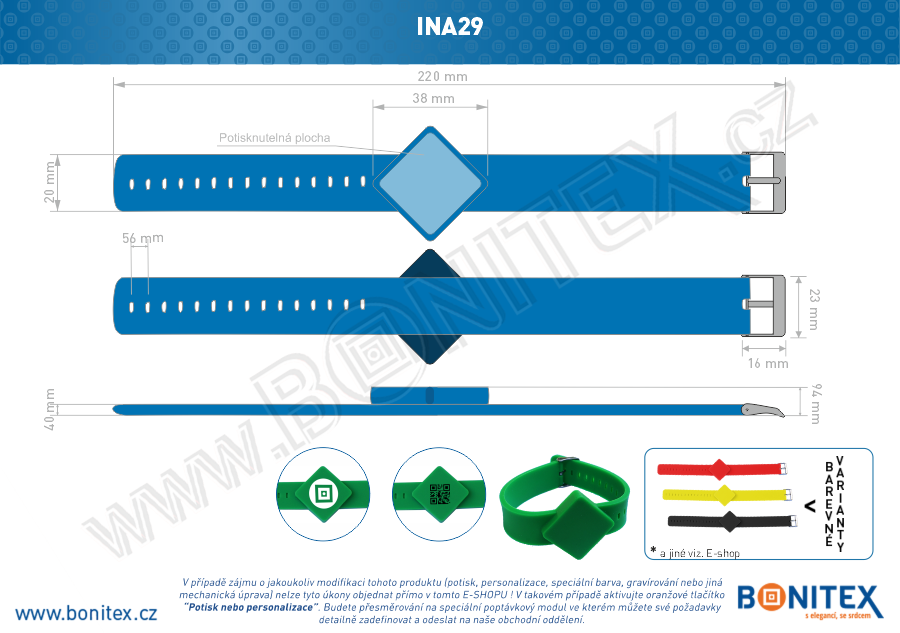 V případě zájmu o jakoukoliv modifikaci tohoto produktu (potisk, personalizace, speciální barva, gravírování nebo jiná mechanická úprava) nelze tyto úkony objednat přímo v tomto E-SHOPU ! V takovém případě aktivujte oranžové tlačítko (výše) "Potisk nebo personalizace" nebo klikněte ZDE. Budete přesměrování na speciální poptávkový modul ve kterém můžete své požadavky detailně zadefinovat a odeslat na naše obchodní oddělení.