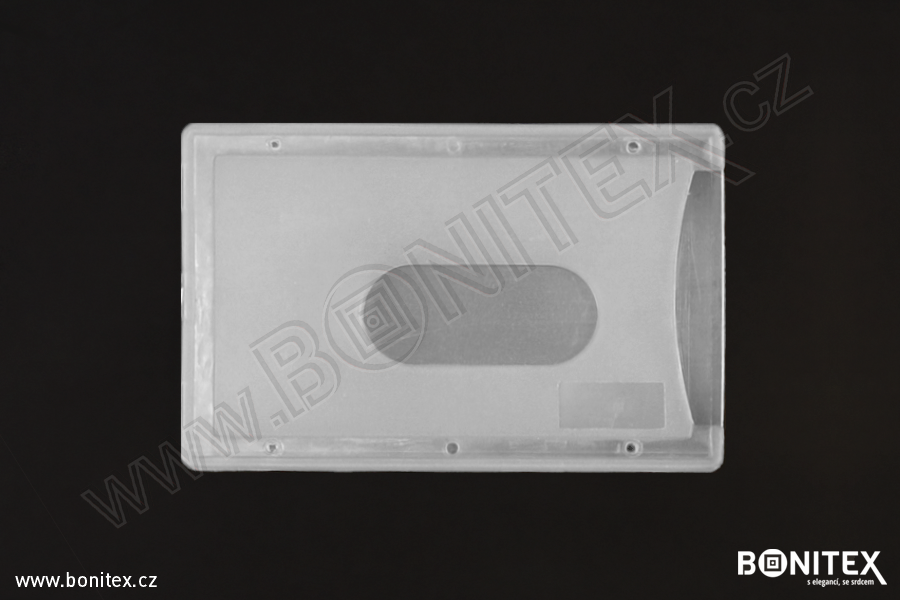 Plastové pouzdro na karty typu CR80 (kreditní karta), s ouškem pro upevnění popruhu, rozměru 60x90…